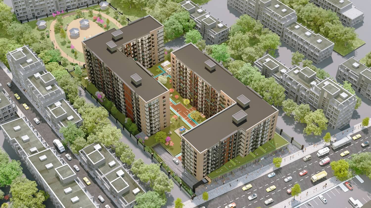 - Proje Özellikleri: Çocuk oyun parkları, spor salonu, sauna, kapalı yüzme havuzu, otopark, peyzaj alanı, 7/24 güvenlik